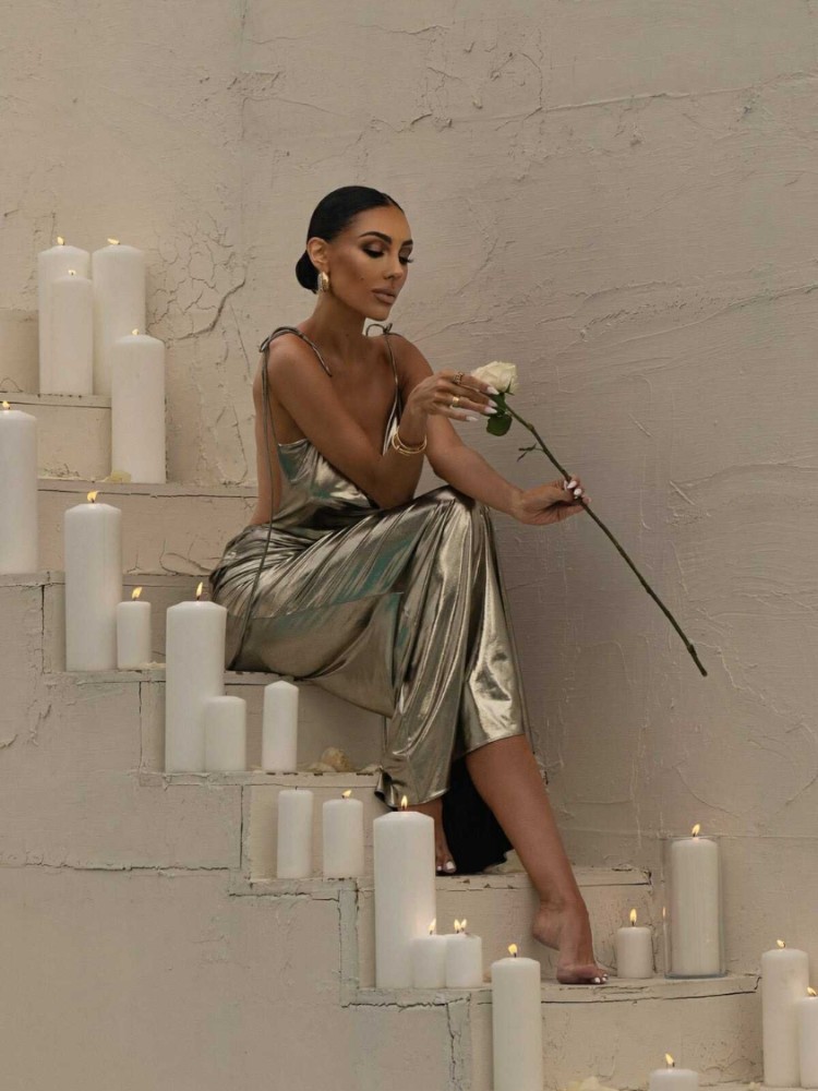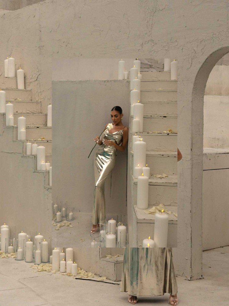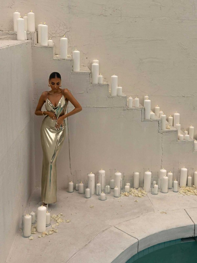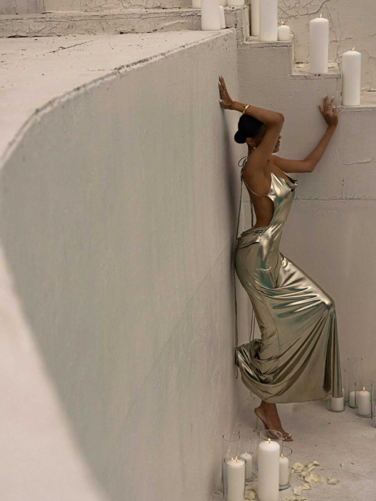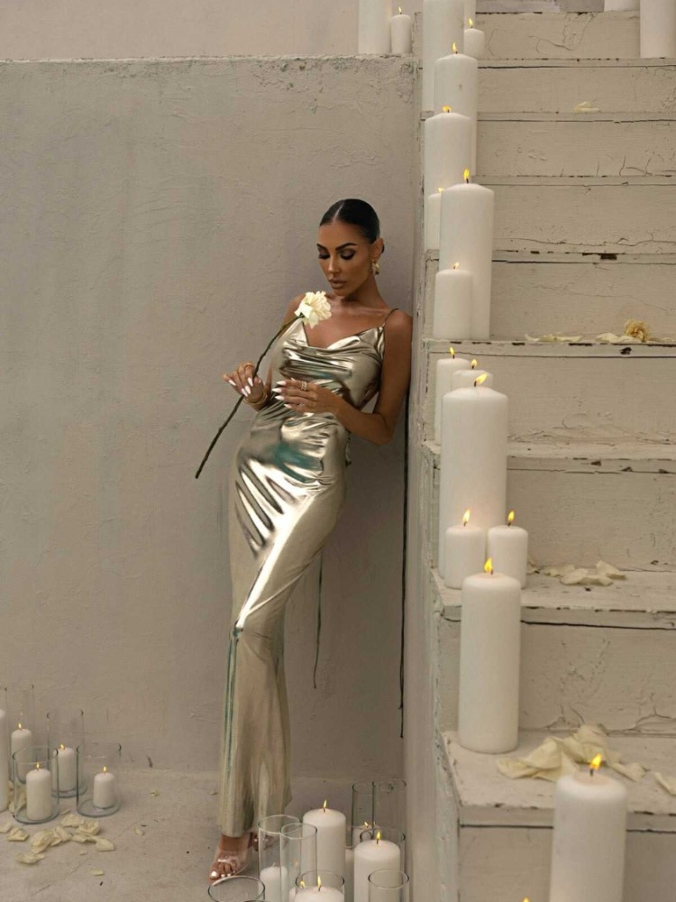 μακρύ λαμέ φόρεμα εξώπλατο